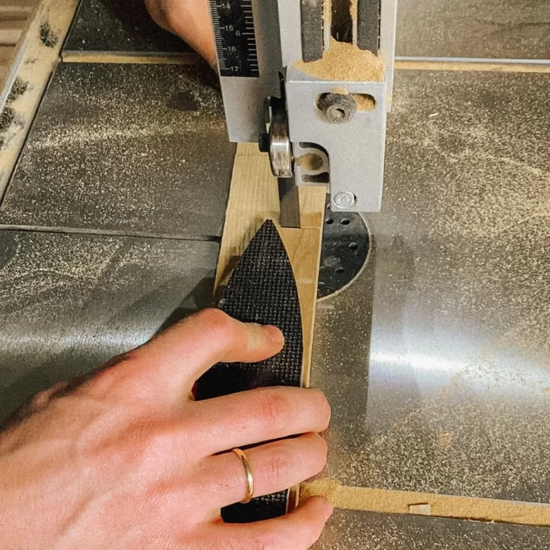 Katra zobena forma tiek manuāli izgriezta uz lentzāģa.
